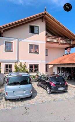Diese geräumige Dachgeschosswohnung in Bruckmühl verfügt über einen separaten Außenaufgang (Treppe) in den ersten Stock, einen großen überdachten Balkon auf der Ostseite, sowie drei Dachgauben.